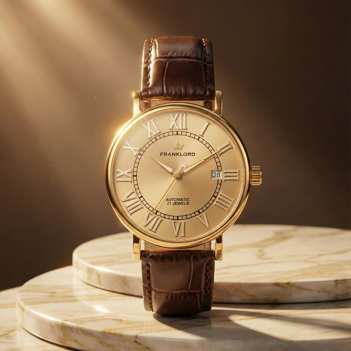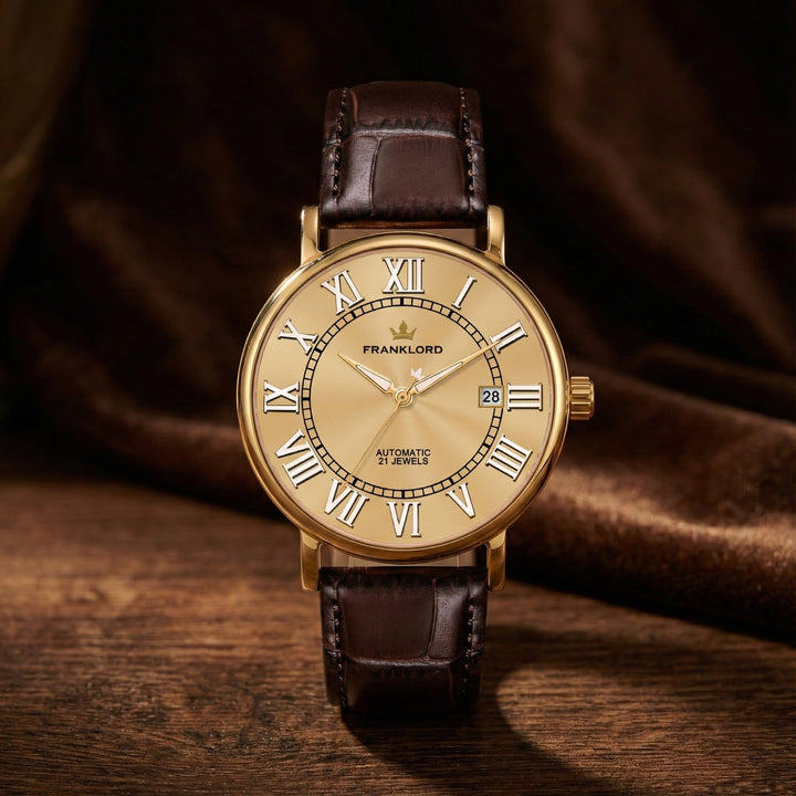 Elegance meets legacy in the Franklord Eternal Roman Automatic – Champagne Gold Edition, designed for individuals who command refinement and quiet luxury.