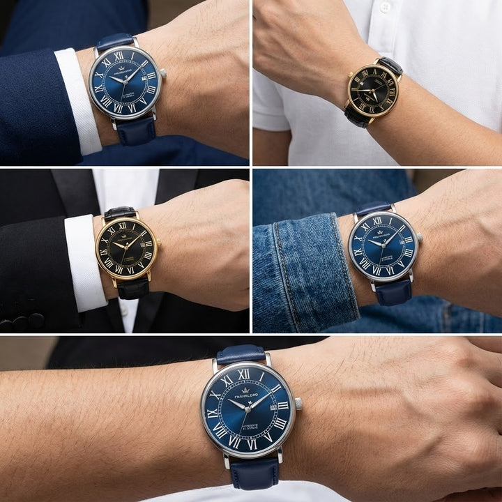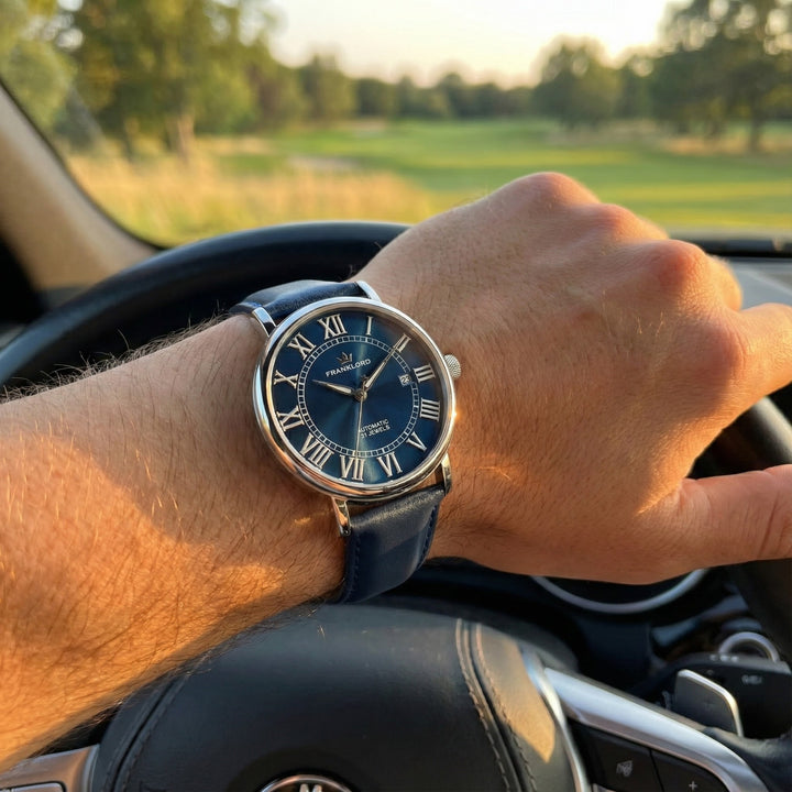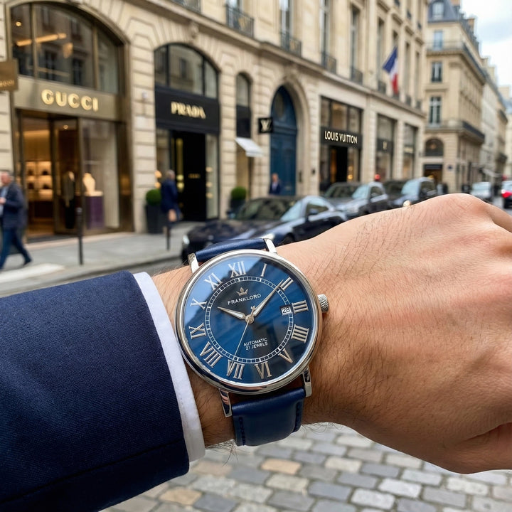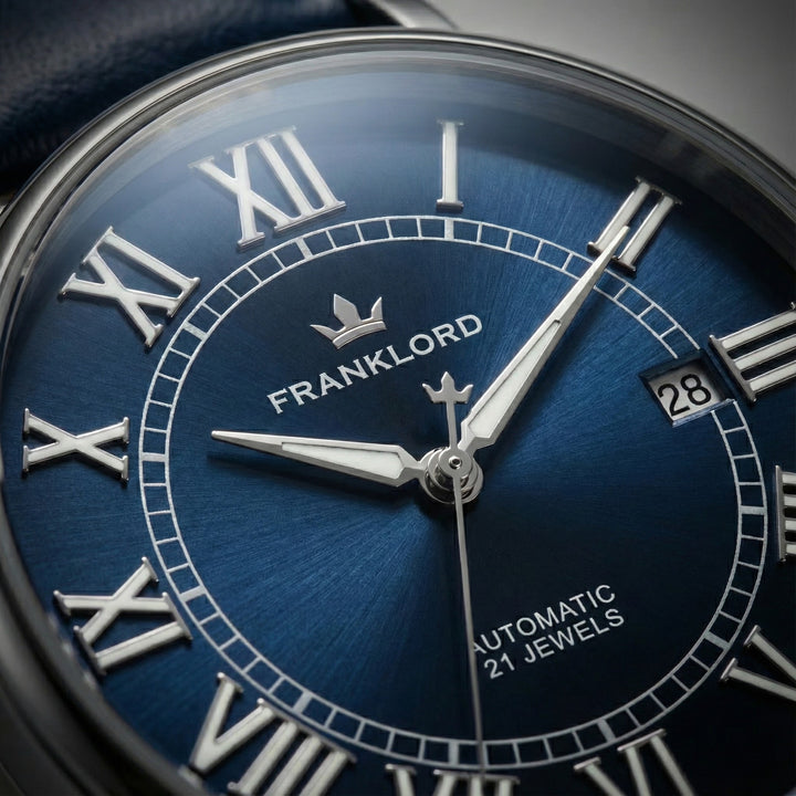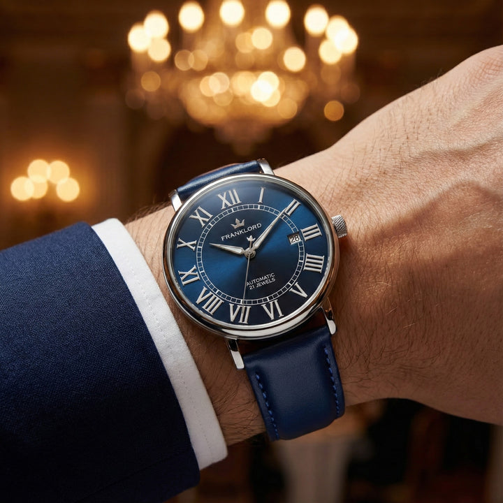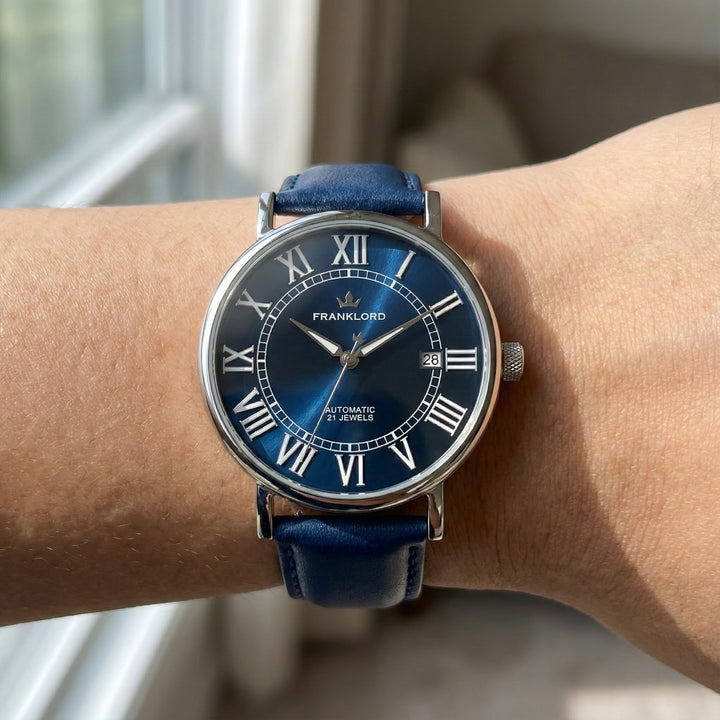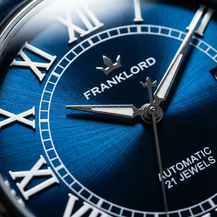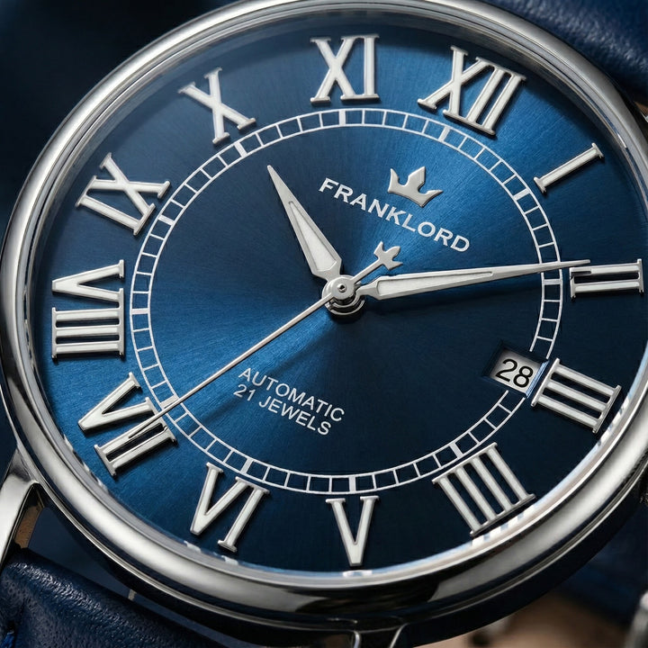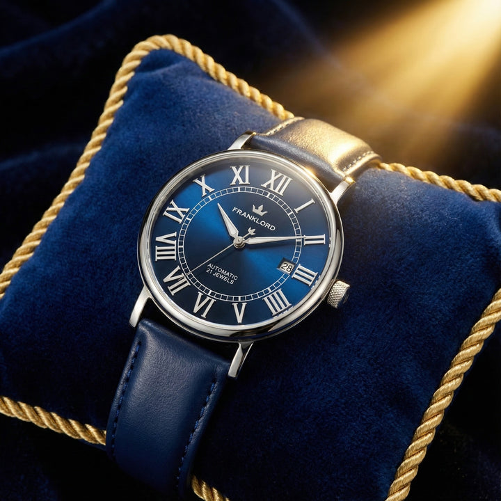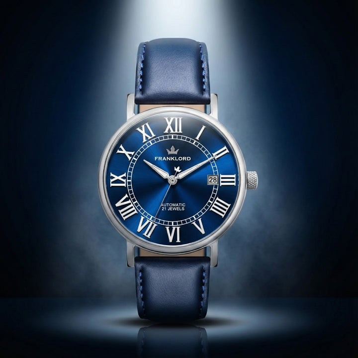 Refined, confident, and timeless — the Franklord Eternal Roman Automatic – Ocean Steel Edition embodies understated luxury for men who command attention without needing to shout.