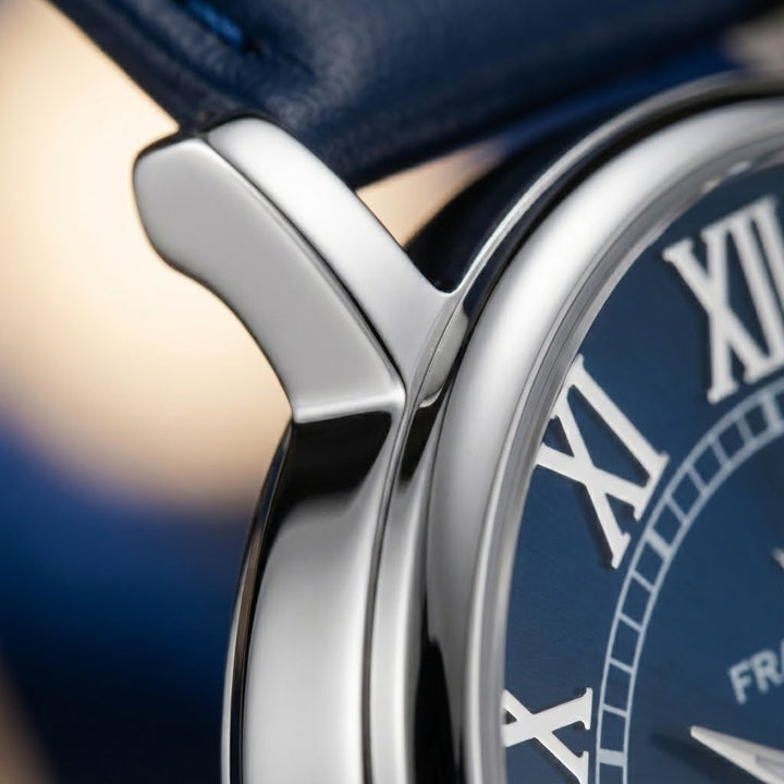 The Roman numeral layout, polished hands, and premium blue leather strap create a harmonious aesthetic — one that feels opulent yet effortlessly modern.