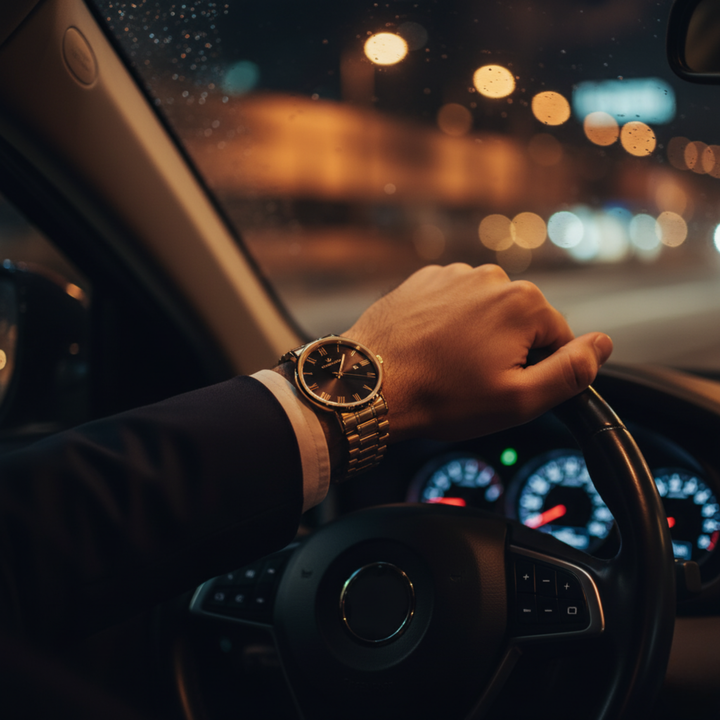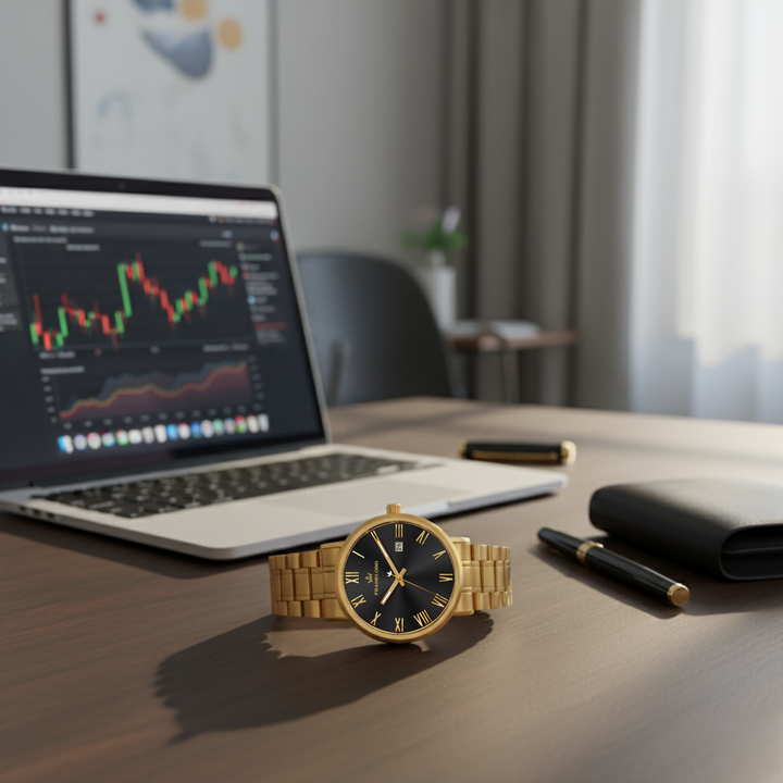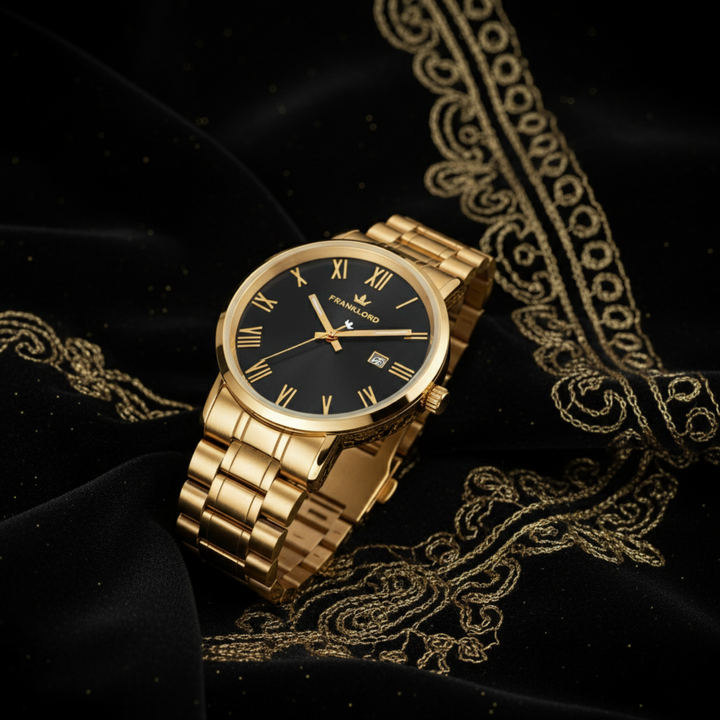In Vastu principles, black is a symbol of stability, protection, and authority. It is believed to absorb negative energy and promote discipline. Paired with gold, a symbol of wealth, this watch is crafted for the individual who commands respect and values timeless style.