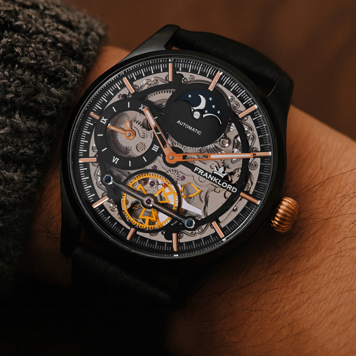 Some men make an entrance. The man who wears the Phantom makes an impact. Engineered for the navigator who operates with precision and purpose, the Franklord Navigator Phantom is a masterpiece of stealth design and mechanical artistry.